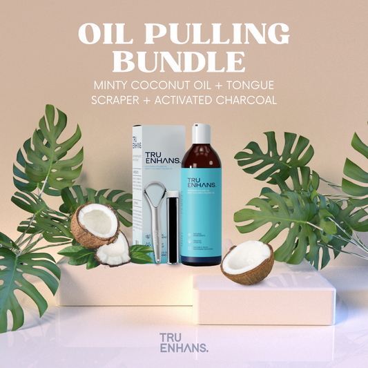 Minty Coconut Oil Pulling Bundle w/ Tongue Scraper and Charcoal